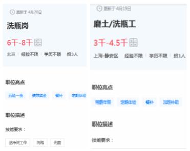 年輕人多選擇辦公室或者業(yè)務類的工作,一般不愿意干清洗器皿這樣既辛苦又沒有技術含量的工作。