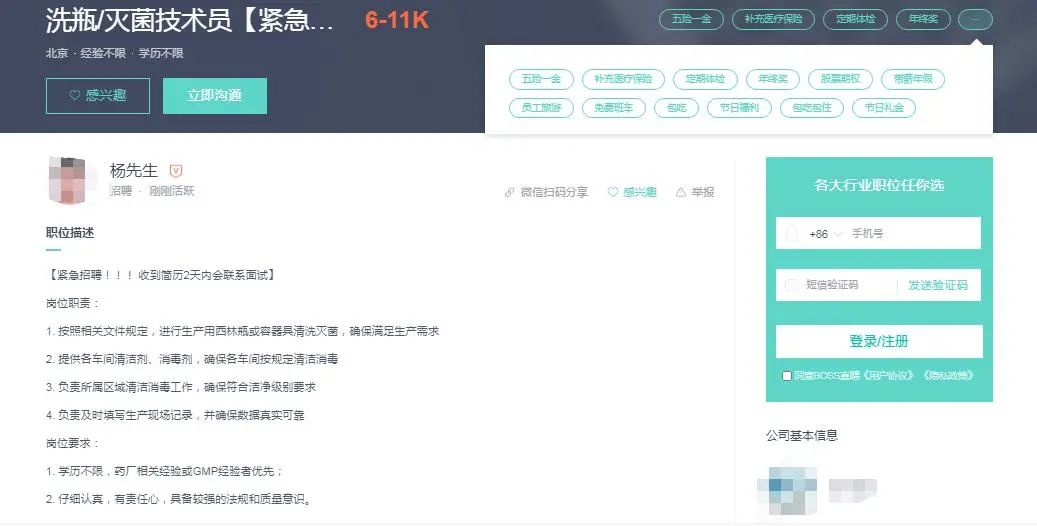 從國內(nèi)熱門招聘網(wǎng)站信息可見,一些洗瓶工人的工資和福利非常豐厚。有企業(yè)開出6K-11K月薪+14薪+【五險一金、補充醫(yī)療、定期體檢、年終獎、股票期權(quán)、帶薪年假、員工旅游、免費班車、包吃、節(jié)假日福利、包吃包住、節(jié)日禮金】。但重金聘來的洗瓶工,卻讓管理者一言難盡。