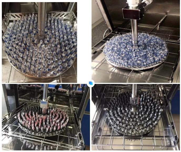 單次清洗量大,效率高——杜伯特清洗機搭配色譜進樣瓶籃架,可放置雙層籃架,一批次可洗800余支,標準程序模式下,45分鐘清洗完畢。